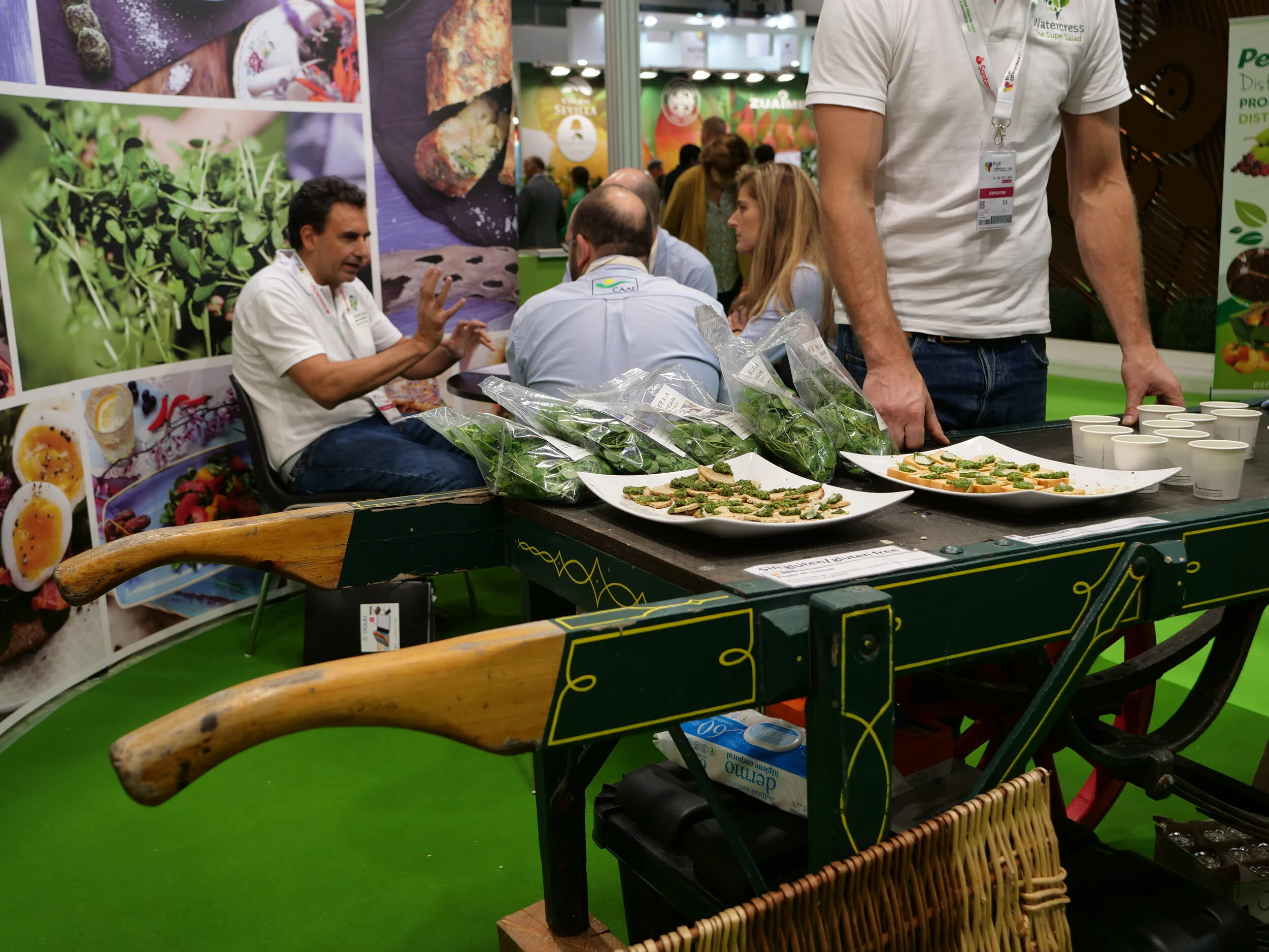 Durante los tres días de la feria, el equipo de berros de agua formado por 6 personas estuvo siempre ocupado desde las 8am hasta el cierre a las 7pm. Los visitantes no sólo pudieron probar berros de agua frescos sino que también pudieron degustar smoothies de berros de agua con mango y piña y pequeñas tapitas de pesto hecho con berros de agua; de hecho, se distribuyeron más de 3.000 muestras durante la feria. El resultado, recibimos 36 páginas de consultas de empresas desde grandes supermercados hasta pequeñas envasadores interesados en berros de agua para IV gama por vez primera.