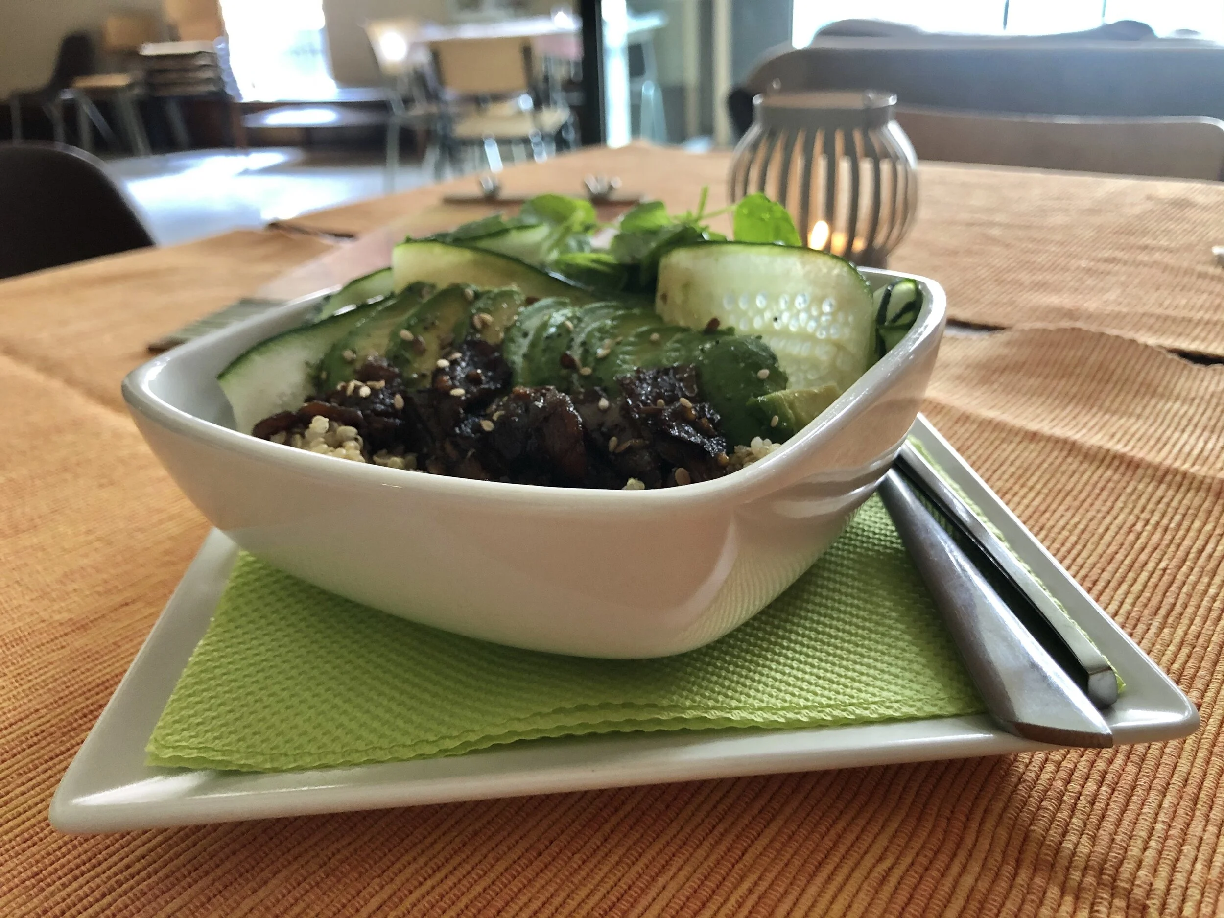Lleno de sabor y muy saludable, el brunch del pasado domingo incluía un smoothie de berros de agua, pepino, pera y apio; un pokebowl con salmón, aguacate y quinoa sobre un lecho de berros de agua y una crema caliente de calabacín, berros de agua y jengibre.
