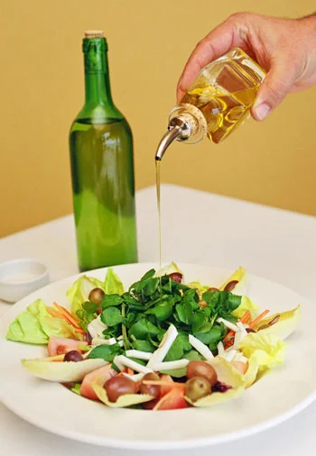 Presentación tradicional de una ensalada de berros canaria: berros de San Antón (Firgas), tomates y queso tierno de La Aldea, lechugas de Guía, aceitunas aliñadas de Agüimes y aceite de oliva virgen extra de Gran Canaria (Foto: Y. Millares).